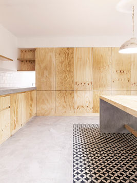 Un sótano de una casa unifamiliar en las afueras de Valladolid debe transformarse en un Salón de Reuniones y Celebraciones . El diseño establece un elemento continuo hecho de cemento y madera que se dobla a lo largo de las paredes, y va adaptando su forma a los diferentes usos del espacio: bodega, chimenea, cocina, chaise lounge y baño.